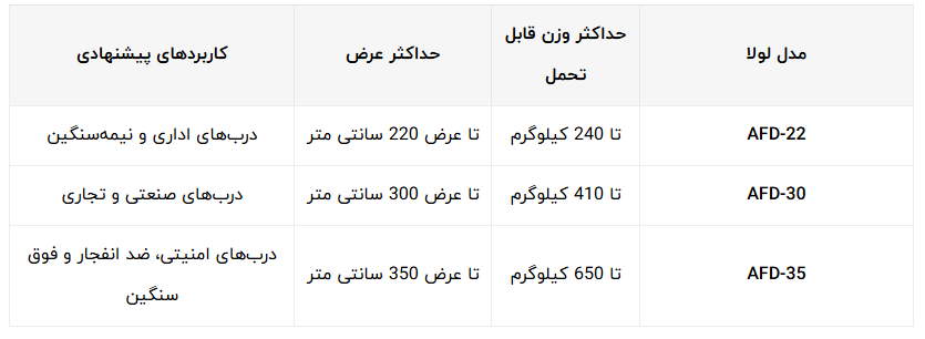 اگر با دربهایی با وزن بالا سروکار دارید، AFD-30 انتخابی فوقالعاده است. این مدل تحمل وزنی تا 410 کیلوگرم را دارد و برای مکانهایی که دربها بهطور مداوم در حال باز و بسته شدن هستند، طراحی شده است.