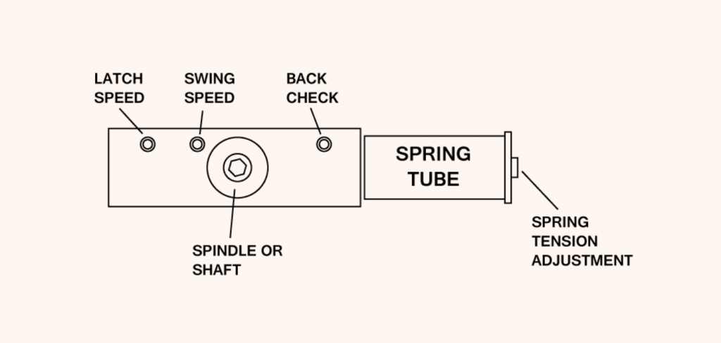 در تصویر زیر انواع پیچ های کنترل آرام بند را نشان می دهد. اینها ممکن است در مدل های مختلف آرام بند وجود داشته باشند، اما معمولاً بک چک را در برندهای آرام بند تسا و آرام بند سارو می بینید که تا حدودی دور از پیچ های سرعت استپ درب و سرعت بسته شدن قرار دارد. همچنین بعضی از آرام بند ها به صورت سه مرحله ای می باشد که دو مرحله درب را استپ می کند و در نزدیکی قفل درب، ضربه آخر را وارد می کند تا درب بسته شود. به طور مثال آرام بند سه مرحله ای برای افرادی که دارای معلولیت هستند، مناسب است زیرا زمان بیشتری را برای عبور کردن آنها بوجود می آورد.