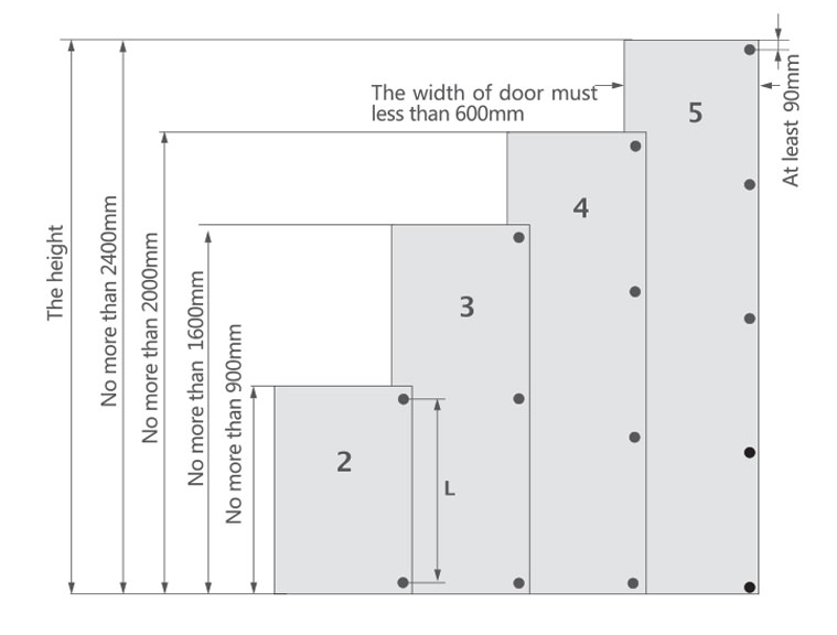 - فاصله اولین و آخرین لولا از لبه درب حدود ۱۰ تا ۱۲ سانتیمتر باشد.