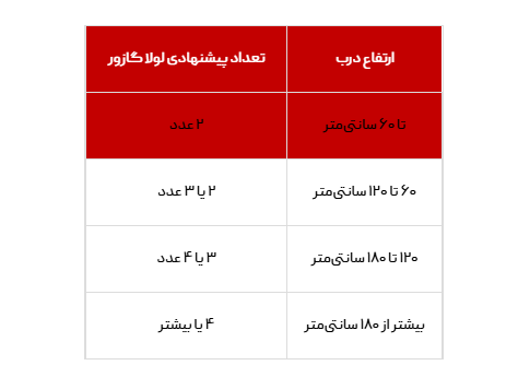 راهنمای انتخاب لولا گازور بر اساس ارتفاع و وزن درب