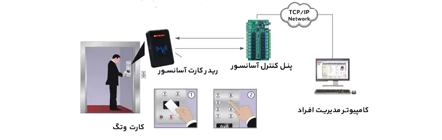 استفاده اشتراکی از پنل کاربری آسانسور با کارت،تگ و رمز: