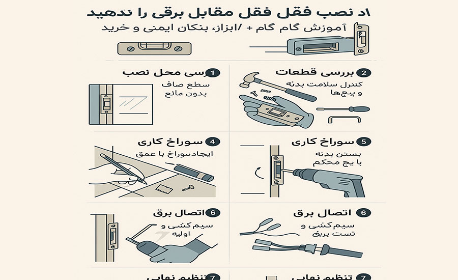 مراحل نصب قفل مقابل برقی