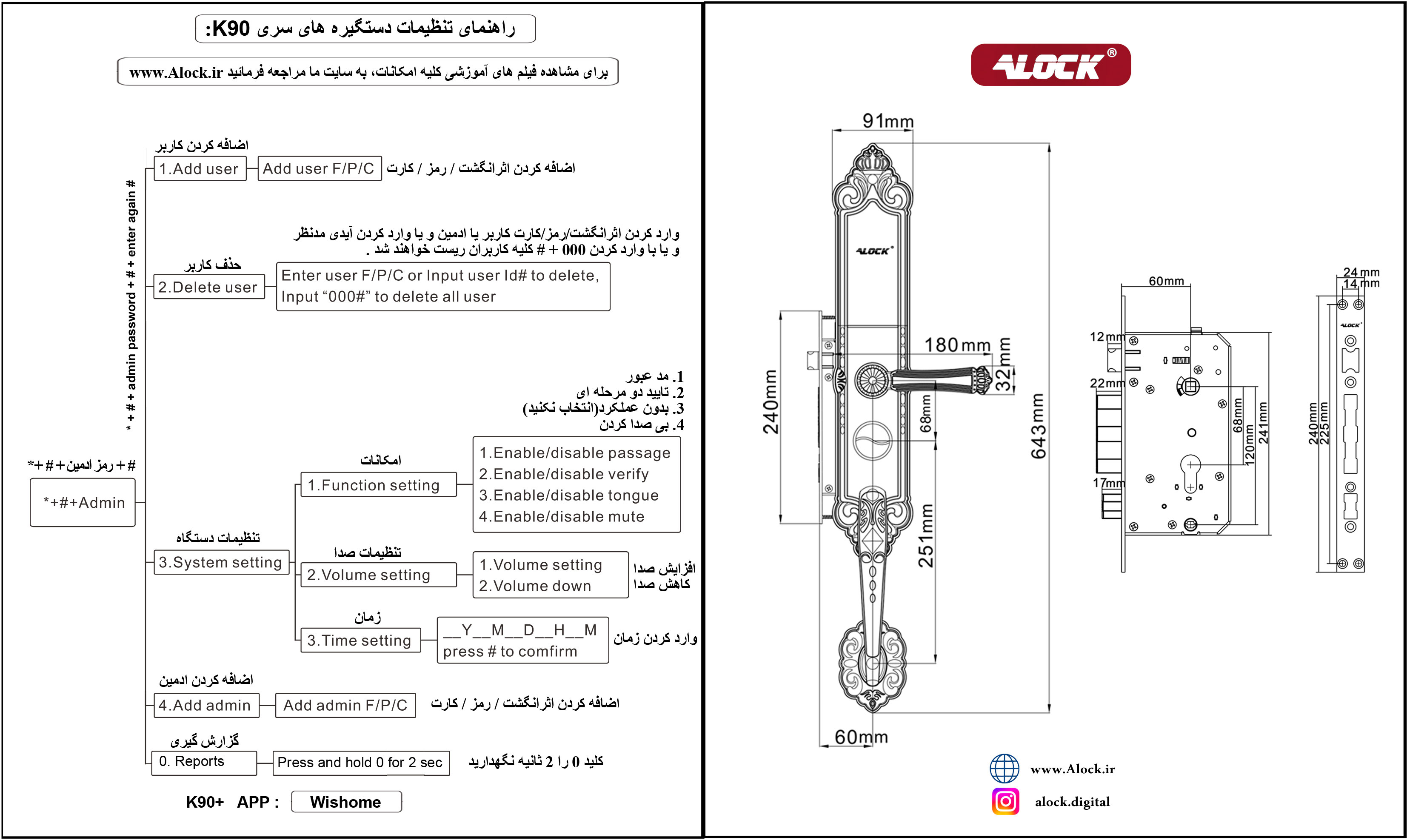 دستگیره دیجیتال هوشمند اثر انگشتی آنلاین مدل +K90 ای لاک ALOCK