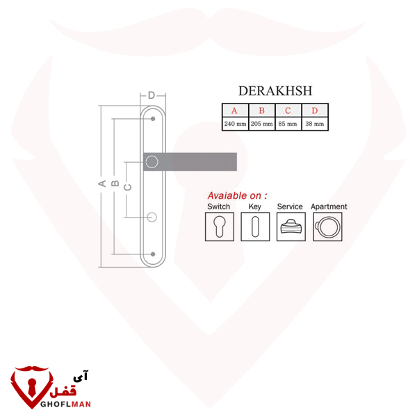 - نوع قفل : کلیدی ، آپارتمانی ، سرویس ، سوئیچی