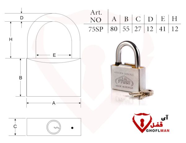 قفل آویز سربی روپوشدار 75CSP پارس قفل PARS GHOFL (عمده)