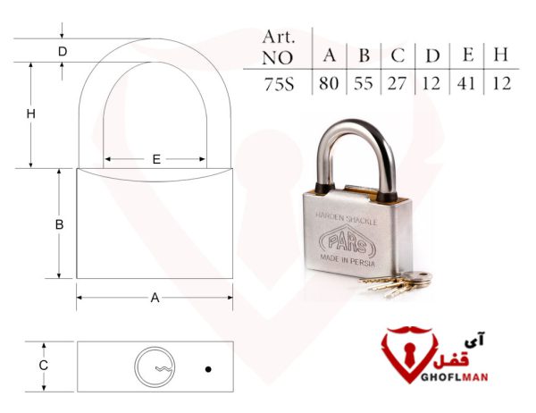 قفل آویز برنجی پارس 75SP از جنس برنج ساخته شده و با روکشی از جنس فولاد ساخته شده تا مقاومت بالایی در برابر ضربه،برش و فشار داشته باشد.